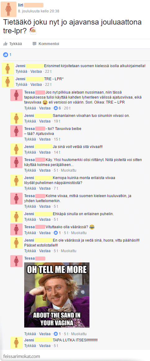 Feissarimokat: Väli- ja tavuviiva aiheuttivat tappelun – ”onko sulla hiekkaa alapäässä?”