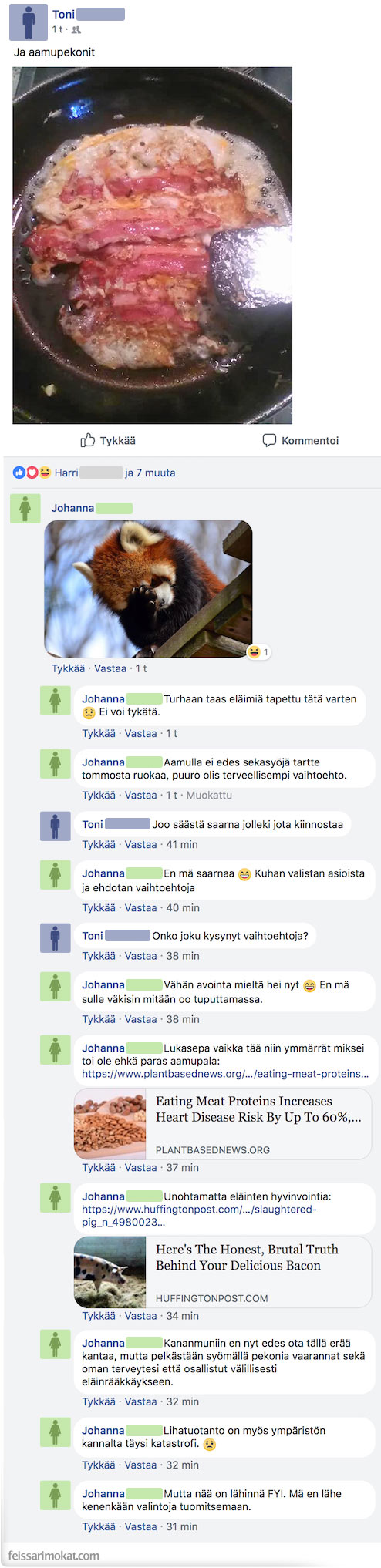 Feissarimokat: vegaani tulee valistamaan suomalaismiestä – saarna ei tepsi