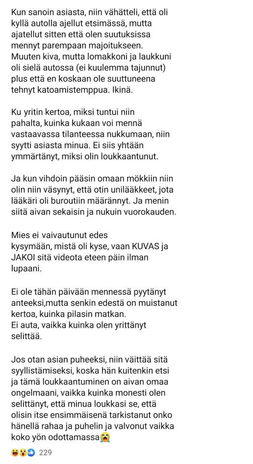 Feissarimokat: vihainen tyttöystävä lähti kävelylle ja eksyi – syyttää miestä, koska tämä ei löytänyt häntä