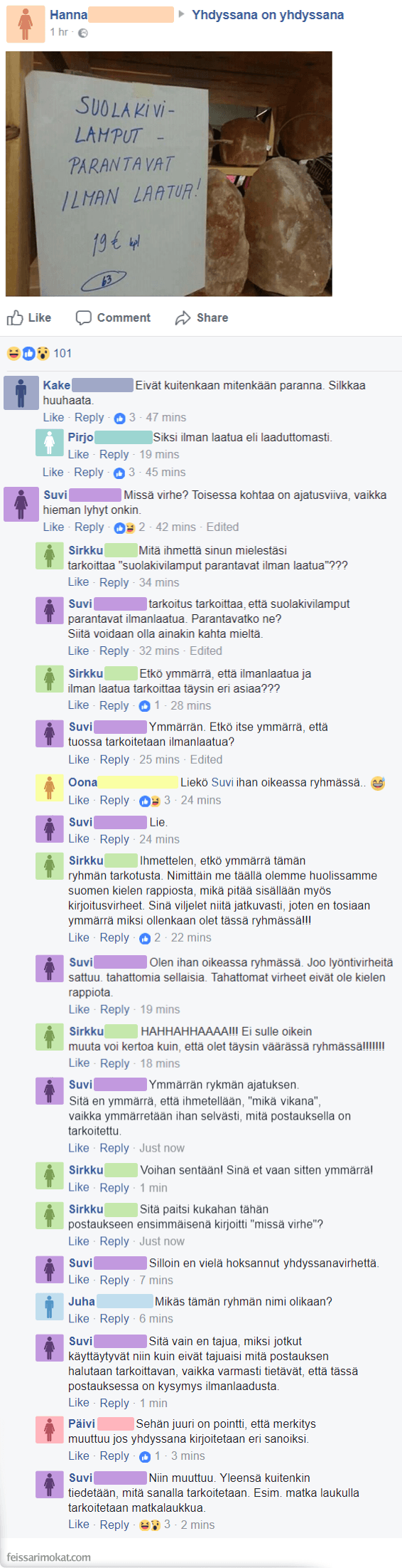 Feissarimokat: yhdyssanavirheitä ja pilkunviilausta – hurja väittely ”ilman laadusta” ja ”ilmanlaadusta”