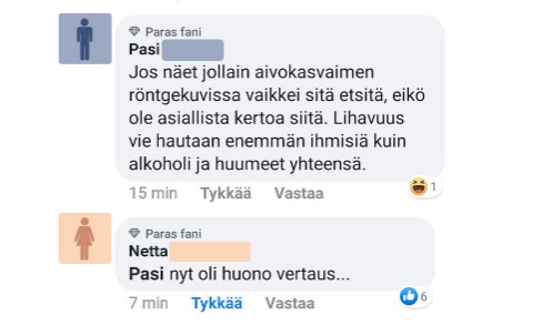 Pasi päätti verrata ylipainoa aivokasvaimeen, josta pitää huomauttaa, vaikka kyseisen ongelman takia ei oltaisi lääkärin vastaanotolla. En ole ihan varma siitä onko aivokasvaimeen vertaaminen paras mahdollinen tapa ottaa kantaa lihavuuteen.