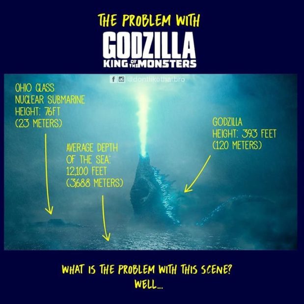 Internet-käyttäjät eivät kuitenkaan pystyneet käsittämään, kuinka Godzilla pystyi seisomaan keskellä valtamerta, jonka keskisyvyys on 3,6 kilometriä.