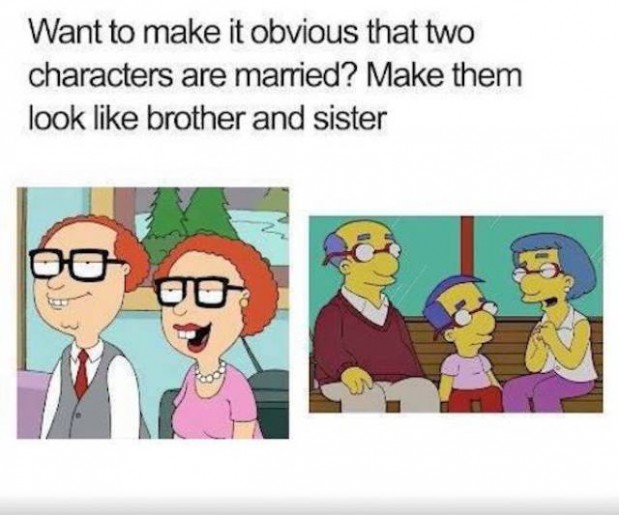 #9 Mistä tietää, että hahmot ovat naimisissa? Tee niistä siskon ja veljen näköisiä.