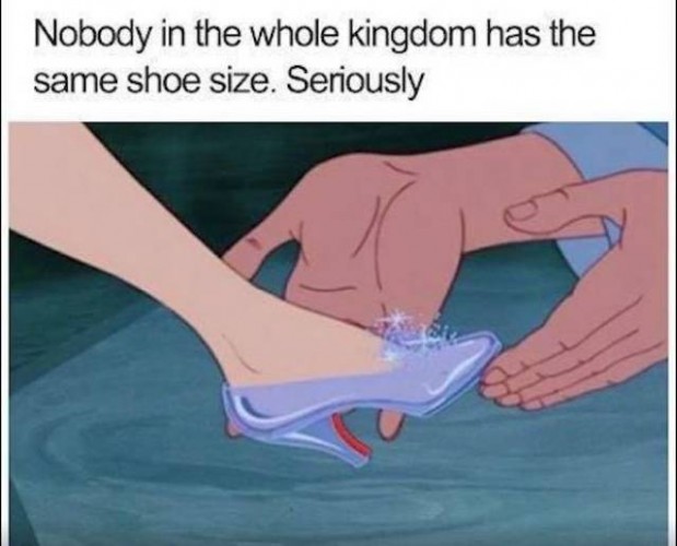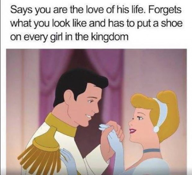 #17 Sanoo naista elämänsä rakkaudeksi. Unohtaa miltä hän näyttää ja joutuu sovittamaan kenkää kaikkien kuningaskunnassa asuvien tyttöjen jalkaan.