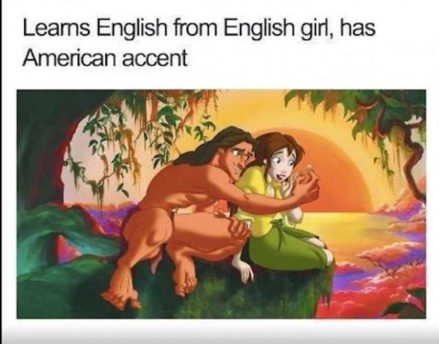 #8 Opettelee englanninkieltä englantilaiselta naiselta, mutta omaa amerikkalaisen aksentin.
