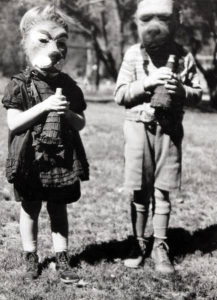 Ennen ei ollut kehittyneitä maskeerausvälineitä, mutta ihmiset näyttivät ainakin minun mielestäni paljon pelottavammilta kuin tänä päivänä. Alkeelliset maskit ja asusteet luovat tietynlaista ”kauhutunnelmaa”, jollaista ei saa tänä päivänä erikoisilla piilolinsseillä, naamareilla tai tekoverellä. Veikkaan että moni säikähtäisi, jos vastaan tulisi esimerkiksi tällainen näky:#1
