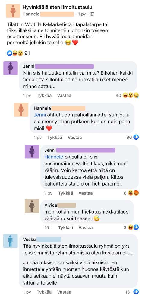 Hannelen ruokatoimitus meni väärään osoitteeseen: Jenni suuttui