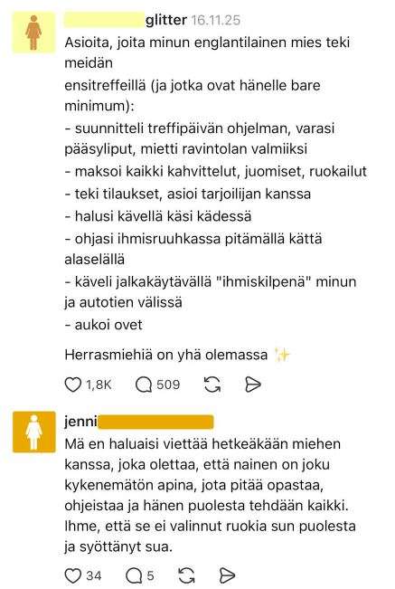 - Herrasmies vai henkilökohtainen avustaja – antaisitko sinä miehen tehdä nämä asiat treffeillä?