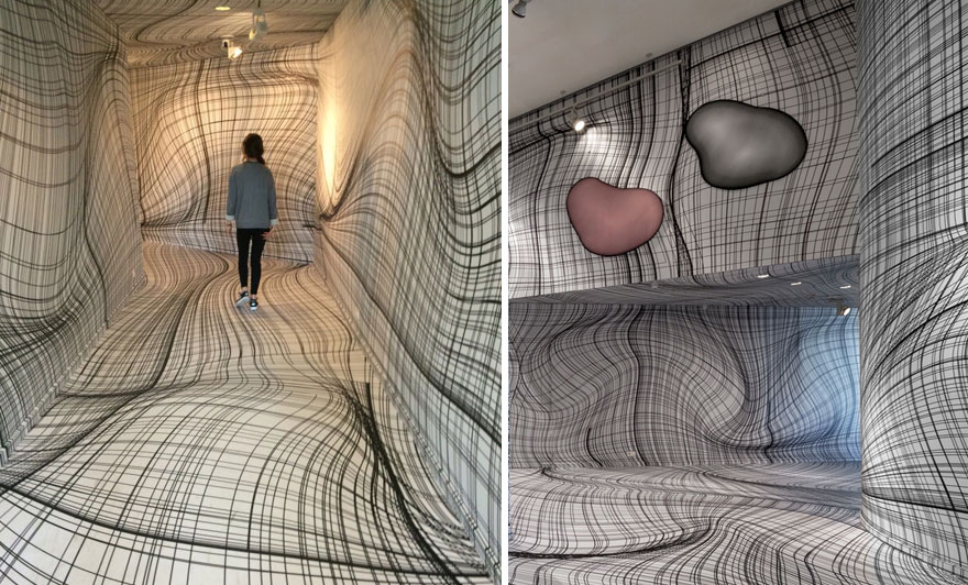Optiset illuusiot ovat hyvin jänniä asioita. Usein ne laittavat jo pienessäkin mittakaavassa ollessaan pään pyörälle ja ihmettelemään miten illuusio voi olla edes mahdollinen. Kun illuusio asetetaan suuremmalle mittakaavalle, kuten esimerkiksi kokonaisiin huoneisiin, ovat ne varsin huikeita! Seuraavat kuvat ovat huoneista, jotka ovat itsessään todellisia optisia harhoja. Kyseiset huoneet ovat tehnyt itävaltalainen taiteilija nimeltä Peter Kogler. 1.