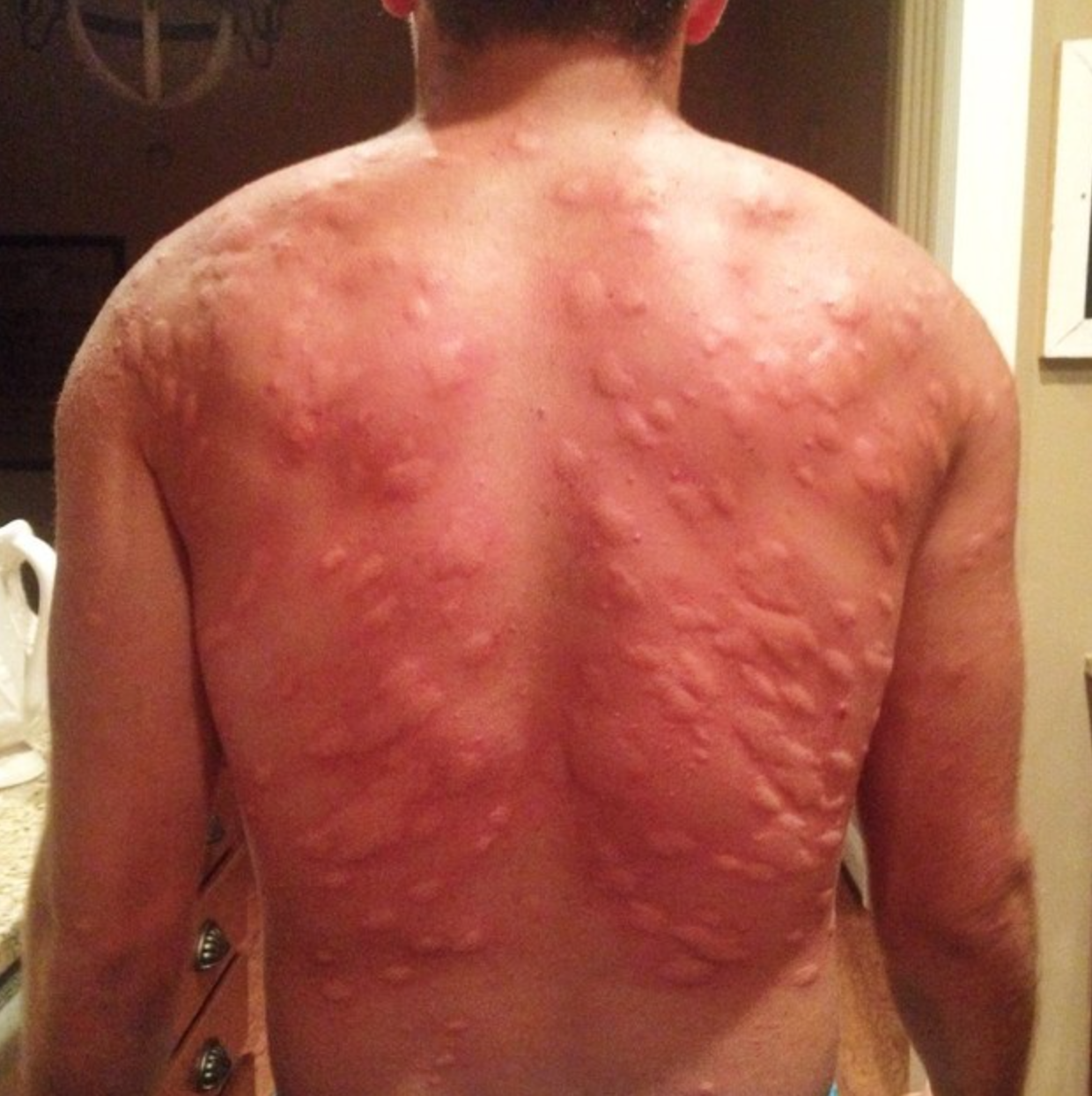Hyttyset muuttivat miehen selän täysin muhkuraiseksi: Julkaisi kuvan