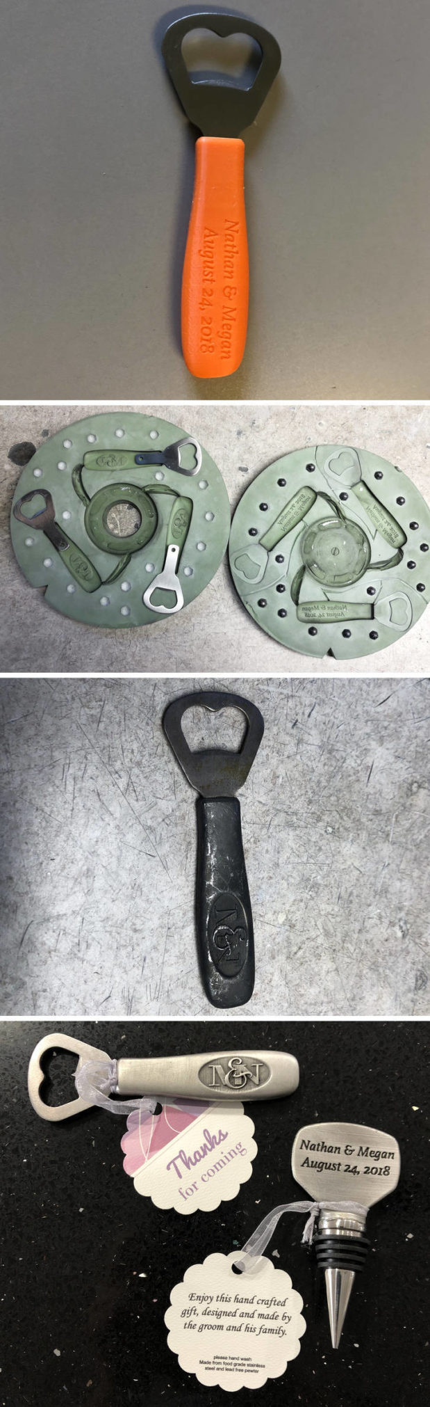 ”Menemme naimisiin tänä perjantaina, joten päätin suunnitella ja tulostaa pullonavaajia ja korkinavaajia häälahjaksi vieraillemme.”