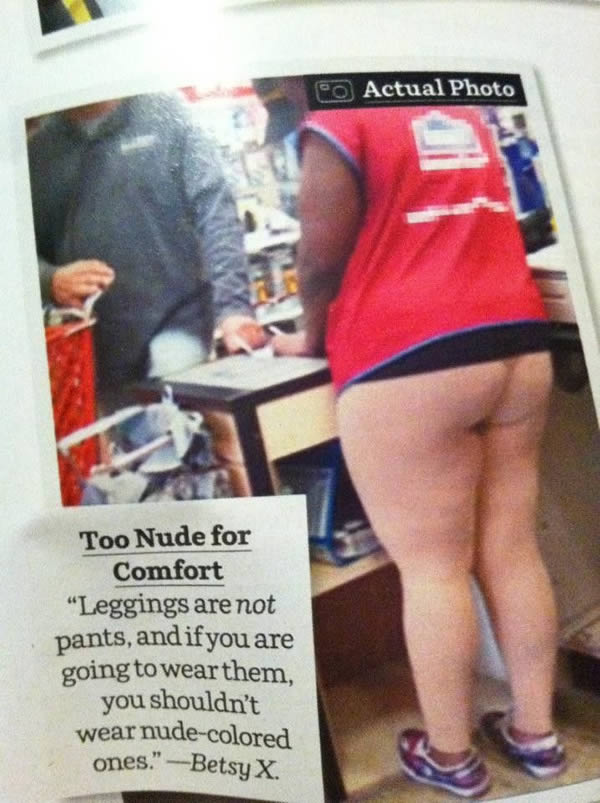 Olemme aiemmin tehneet artikkeliin, jossa todettiin, että legginsit eivät sovi housuiksi. No nämä ihmiset vetivät homman vielä uudelle tasolle, sillä he pukivat yllensä ihonväriset legginsit.1.