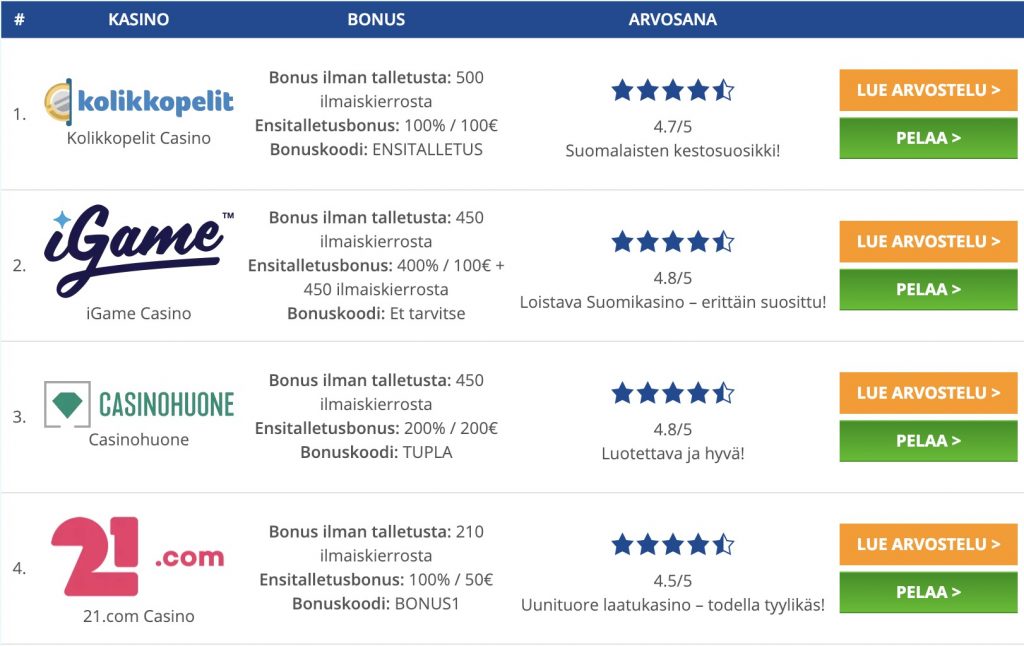 Mitä vielä odotat? Tutustu nettikasinoihin kasinokavereiden nettisivulla ja lunasta ilmaiskierrokset tekemällä tilejä eri kasinoille. :)