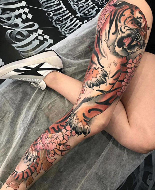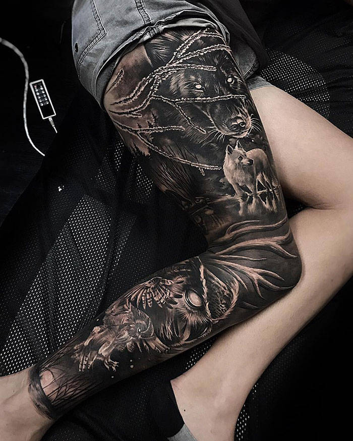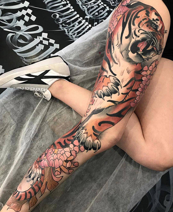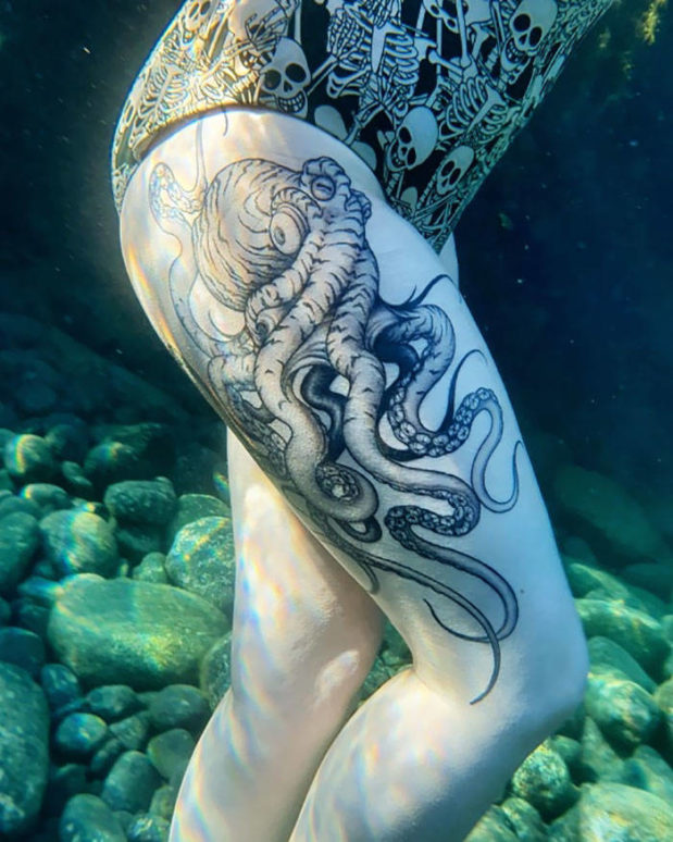 Reisiin ja jalkoihin tehdyt tatuoinnit ovat parhaimmillaan upeaa katsottavaa.