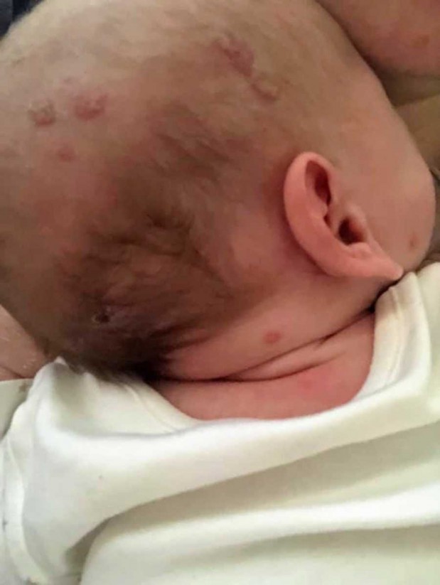 Kolme päivää myöhemmin rakkuloita oli tullut lisää, niitä oli yhteensä 5 – sitä seuraavana aamuna niitä oli tullut kuusi lisää, kaikki näyttivät tulehtuneilta ja päätin ottaa yhteyttä lääkäriin, sillä aiempi diagnoosi ei tuntunut pitävän paikkansa. Minulle kerrottiin alunperin että vauvallani oli ekseema.