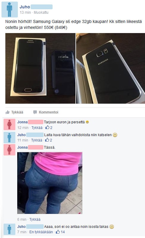 Juho myymässä Samsung Galaxya – Ei hyväksynyt naisen tarjousta