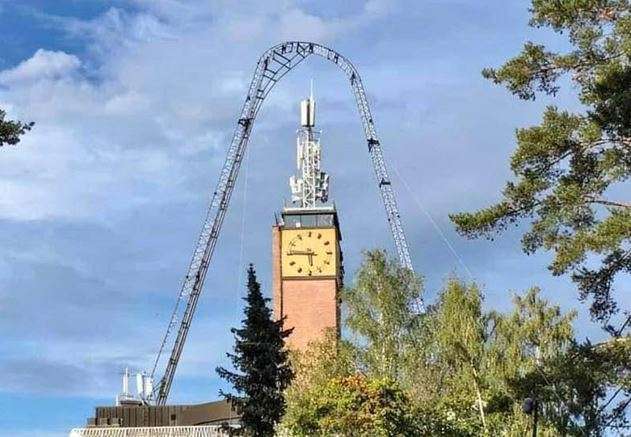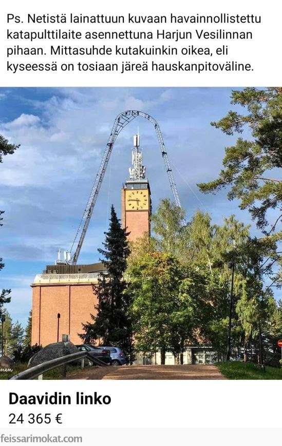 Kyseessä olikin 40 metriä korkea ja 25 metriä leveä huvipuistolaite, joka tunnetaan yleisesti nimellä ”Daavidin linko”.