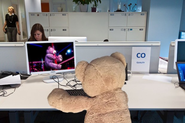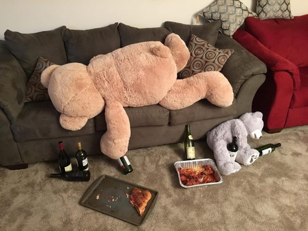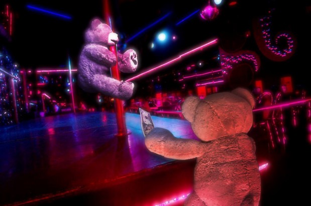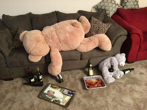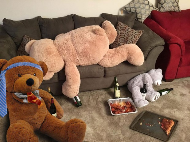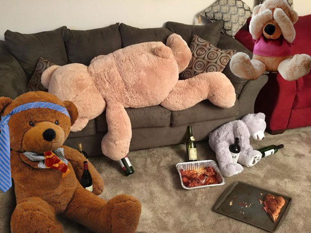 Joku oli asetellut pehmolelut niin, että ne näyttävät aivan sammuneilta juopoilta. Siksi myöskään kuvanmuokkaajat eivät voineet olla vastustamatta kiusausta. Juopuneet nallekarhut pääsivät mukaan muun muassa strippiklubille sekä poliittiseen valtapeliin. En voinut olla nauramatta, sillä kuvat muistuttavat erehdyttävän paljon TED-elokuvaa.#1