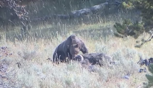 Auton alle jäänyt biisoni oli loukkaantunut ja onnistunut kävelemään muutaman metrin ennen kuin se kuoli. Yellowstonessa sattunut tapaus sai turistit hämmästymään, sillä paikalle ilmaantui nopeasti nälkäinen karhu.