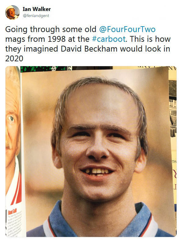 Ian Walker oli selannut vanhoja sanomalehtiä ja bongannut kuvan, jossa lehden toimittaja oli muokannut kuvan David Bechamista. Vuonna 1998 julkaistun kuvan tarkoituksena oli havainnollistaa, miltä David näyttäisi vuonna 2020.