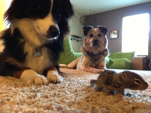 Koirat adoptoivat orvoksi jääneen oravanpoikasen – Katso kuvat ja videot