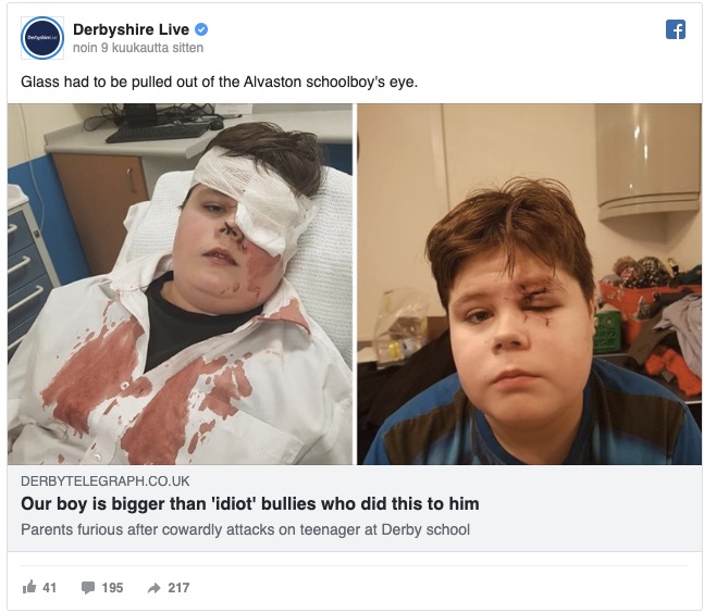 Koulukiusaajat olivat lähellä sokaista 15-vuotiaan pojan – heidän tekonsa sai isän järkyttymään