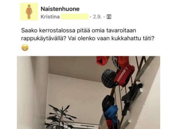 Paras kaikista on viimeinen julkaisu, jossa eräs suomalaisnainen kysyi onko normaalia, että naapuri pitää kaikkia ulkotavaroita rappukäyvässä. Jos minä olisin hänen asemassaan niin ottaisin suuren jätesäkin ja lappaisin kaikki kamat suoraan roskikseen. Rappukäytävä on tärkeää pitää tyhjänä jo pelkän turvallisuuden vuoksi, sillä tulipalon sattuessa tällaiset viritelmät voivat olla hengenvaarallisia.