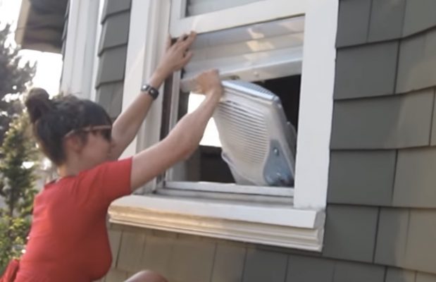 Niukalla mekolla varustettu nainen päätti kiivetä ikkunasta sisään ja miespuolinen naapuri näytti olevan erityisen iloinen katsoessaan naisten operaatiota.