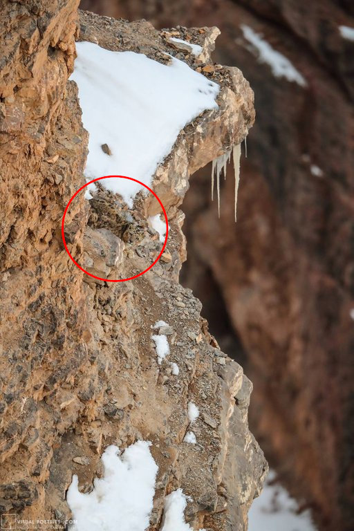Lumileopardia kannattaa etsiä lumisen kohdan alapuolelta.
