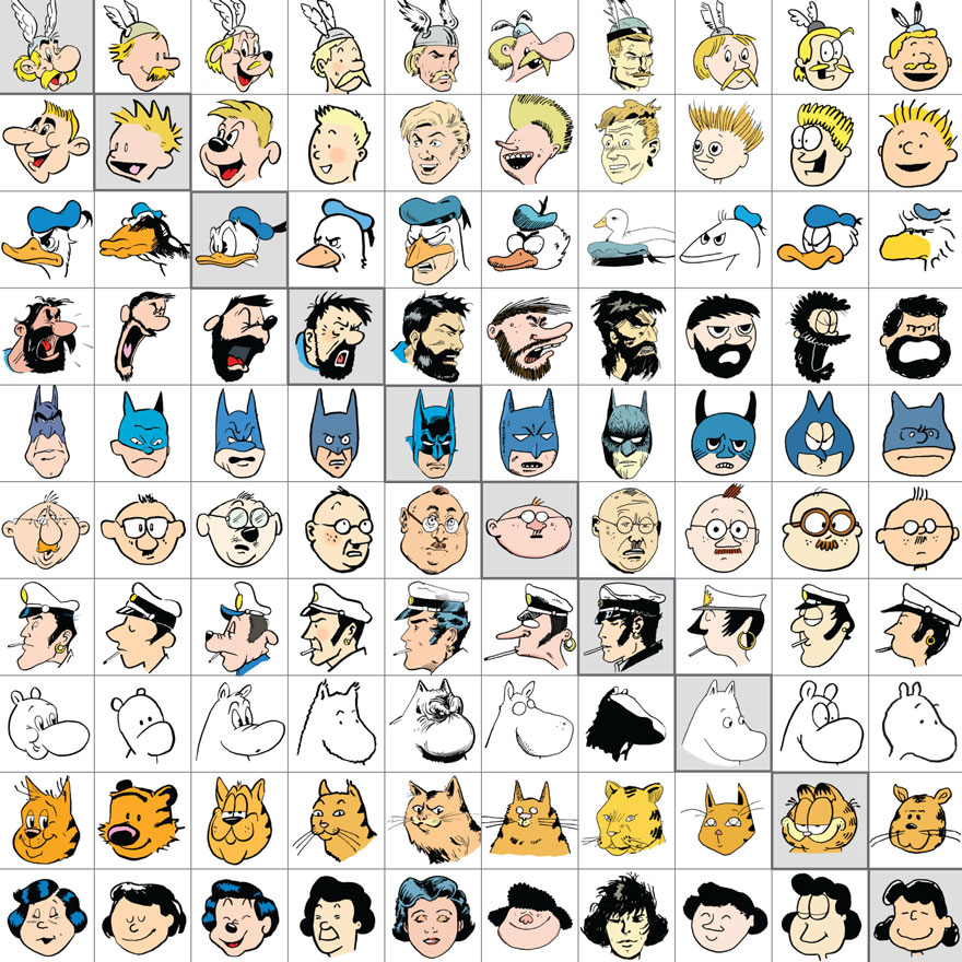 Sarjakuvia osaavat piirtää monet sarjakuvapiirtäjät, mutta itse sarjakuvahahmon luominen onkin haastavampi asia. Kuuluisaksi nousseita sarjakuvahahmoja on muun muassa Aku Ankka, Asterix ja Obelix sekä Karvinen. Jokainen hahmo on kuvitettu ja piirretty omalla tyylillään. Oletko koskaan miettinyt, miltä esimerkiksi Aku Ankka näyttäisi, jos se olisi piirretty samalla tyylillä kuin vaikka Asterix ja Obelix tai Jaska Jokunen? Oheisesta kuvasta näet kymmenen tunnettua sarjakuvahahmoa kymmenen kuuluisan sarjakuvapiirtäjän tyylillä piirrettyinä. Kyseisen ”kuvataulukon” on piirtänyt suomalainen Jaakko Seppälä. Kuvan alapuolelta näet hahmon ja piirtäjän.
