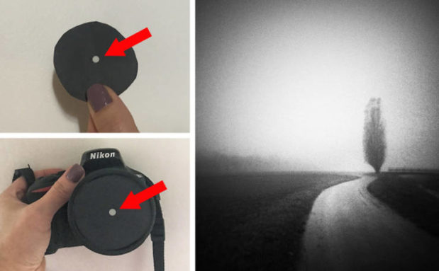 3. Tee pieni reikä paperiin ja peitä kameran linssi. Saat tämän ansiosta valokuviin blurratun efektin.