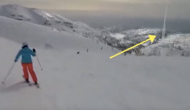 Laskettelijat nauttivat talvipäivästä – rento ilmapiiri muuttuu, kun he huomaavat ballistisen torjuntaohjuksen