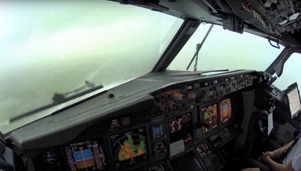 Lentokone laskeutuu rajun ukkosmyrskyn aikana – katso miltä tilanne näyttää lentäjien näkökulmasta