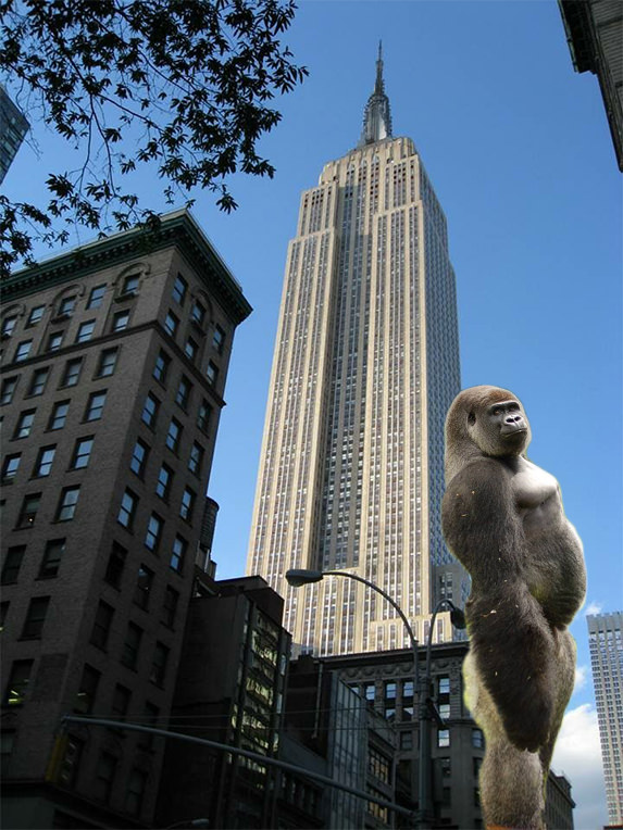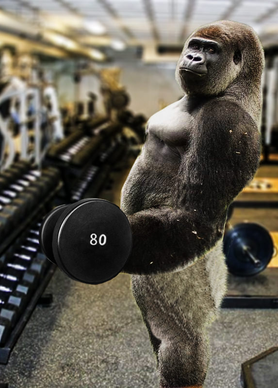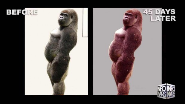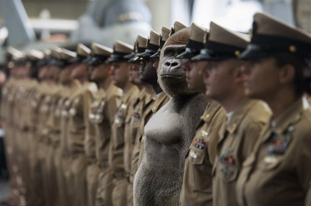 Ylväästi seissyt gorilla tarjosi lukuisia muokkausmahdollisuuksia, joita ihmiset eivät voineet jättää käyttämättä. Gorilla pääsi mukaan muun muassa elokuvien kansiin, sotilaallisiin operaatioihin ja laihdutusmainoksiin. Mikä kuvista on oma suosikkisi?Tässä alkuperäinen kuva komeasta gorillasta.