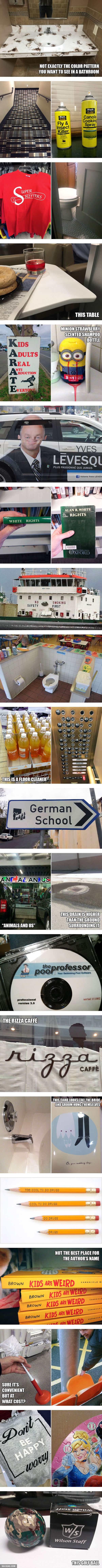 Suunnittelijoita on moneen eri lähtöön ja tarpeeseen. Toiset suunnittelevat etikettejä purkkeihin ja toiset taas penkkirivejä stadioneille. Kuten kaikissa työtehtävissä, niin myös näissäkin, kaikki ei mene aina niin kuin piti. Seuraavissa kuvissa on loistavia esimerkkejä tapauksista, joissa lopputulos ei todellakaan ole edes tyydyttävä. Idea on saattanut olla ihan hyvä, mutta toteutus ei. Osassa lopputuloksista kokonaisuus on ollut tuhoon tuomittu jo idean syntyessä.
