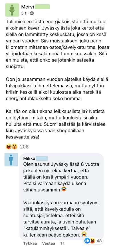 En tiedä sinusta, mutta minusta Jyväskylä saa pitää katulämmityksensä.