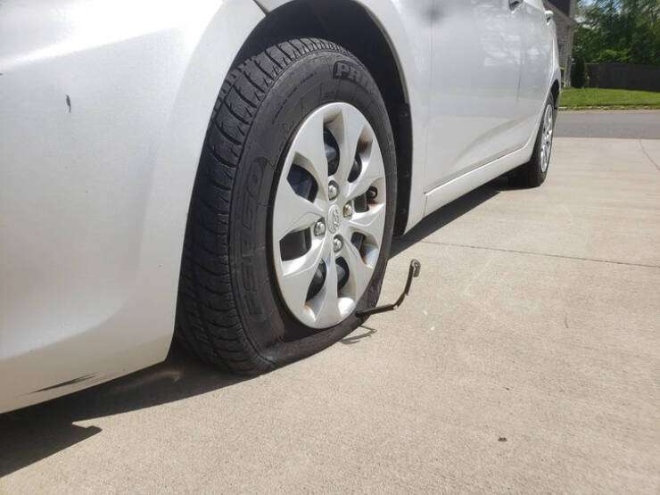 #7 ”Ajoin pihani nurmikkoa, kun ruohonleikkuri hajosi ja osa lensi autonrenkaaseen”