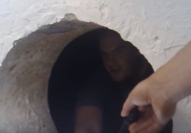 The homeowner took it upon himself to peek his head in as well. Much to his dismay, he, too, was met with a blanket of darkness that he couldn’t see past. So, he made the decision to climb inside and do some exploring himself…