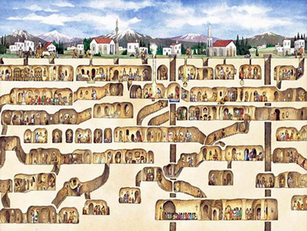 Kaupungissa on asunut sivistyneitä ihmisiä, sillä tunneleista löydettiin muun muassa baareja, panimoita, luostareja ja kirkkoja. Kaupungin ylimmillä tasoilla oli ihmisten makuu- ja olohuoneita.