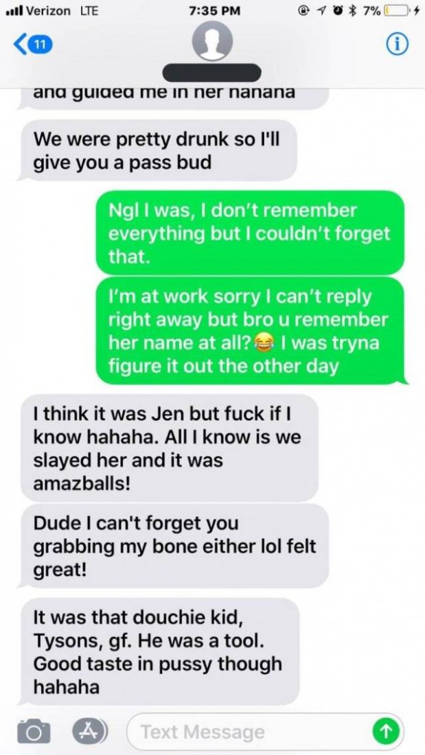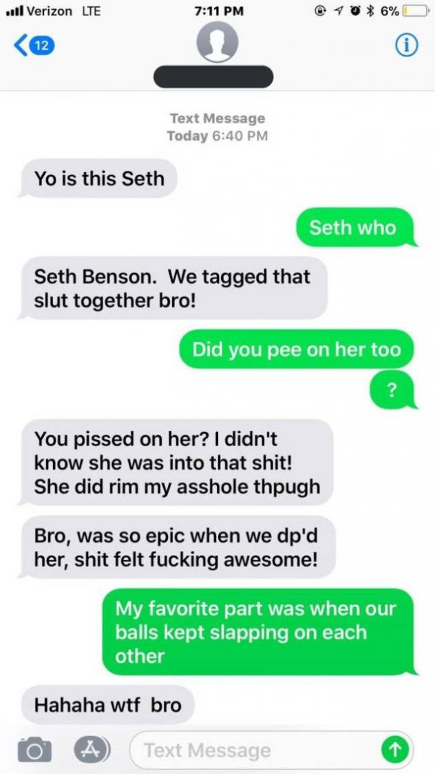 Seth Benson sai ansaitsemansa opetuksen, kun hän kerskui viime yöstä tuntemattomalle naiselle, jota hän luuli ystäväkseen. Viestit vastaanottanut nainen ei kuitenkaan kertonut totuutta heti, jonka ansiosta Seth päätyi kertomaan tarinan kiusallisia yksityiskohtia myöten. Seth puhui naisesta todella alentavaan sävyyn – voit katsoa alapuolelta, kuinka keskustelu eteni.