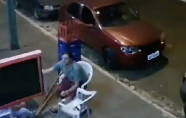 Brasilialaismies oli nauttimassa drinkkiä paikallisen kuppilan edustalla, kun autosta irronnut rengas törmäsi häneen kovalla nopeudella. Mies lensi vauhdilla tuolistaan ja tilanne näytti hengenvaaralliselta.