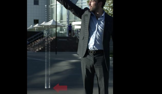 Oheisella videolla mies pudottaa vieterin maata kohti, mutta vieterin alin osa ei liiku ennen kuin sen yli osa on pudonnut samalle korkeudelle alimman osan kanssa.
