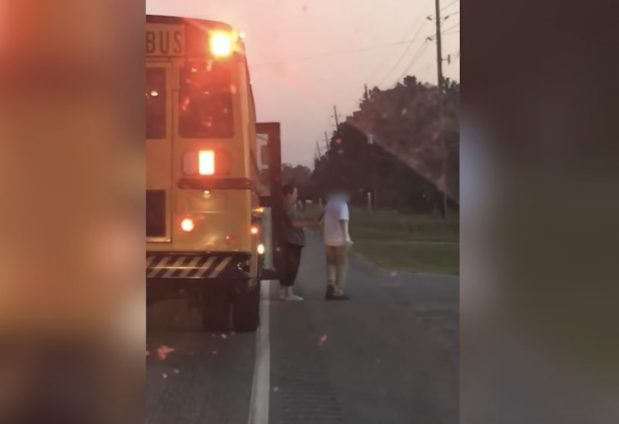 Hänen edessään ajaneen koulubussin kuljettaja pysähtyi nappaamaan oppilaita kyytiin, mutta ennen sitä hän tarkasti oppilaat huolellisesti metallinpalastimen avulla.