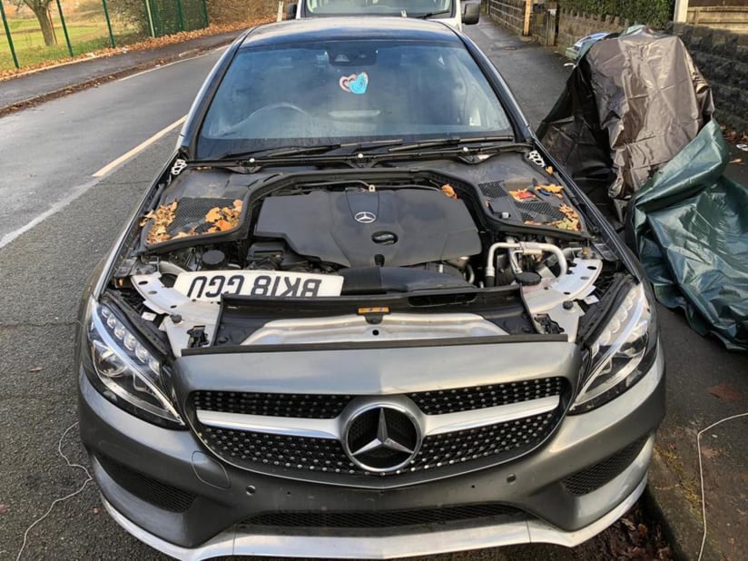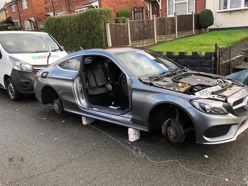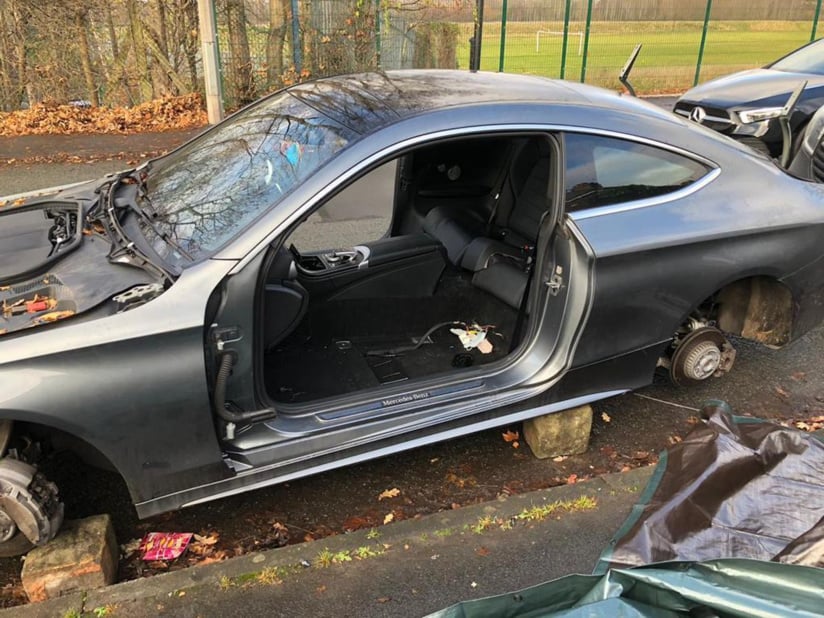 Uudesta C-sarjan Mercedes Benzistä ei jäänyt jäljelle juuri mitään, kun ammattirikolliset iskivät paikalle ja purkivat auton osiin omistajan talon edessä keskellä yötä.