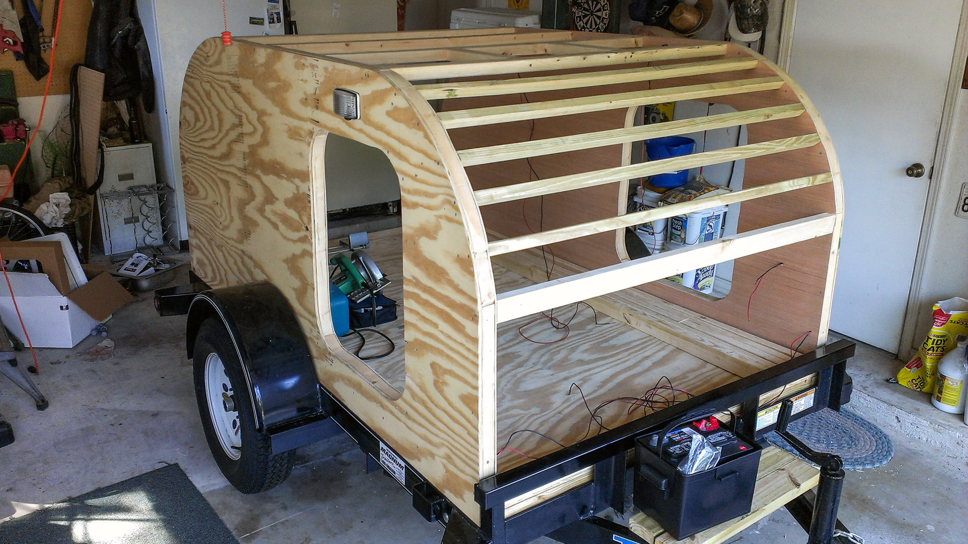 Asuntoautolla- tai vaunulla maailman kiertely on monien mielestä erittäin mukavaa. Se antaa mahdollisuuksia leiriytyä moneen paikkaan ja omat tavarat tai oikeastaan koko pieni asunto kulkee koko ajan kätevästi mukana. Kaikilla ei kuitenkaan ole tähän lystiin varaa tai muuten vain mahdollisuutta. Tämän lisäksi on myös ihmisiä, jotka haluavat jotain persoonallisempaa majoitusmuotoa ja näin kävi tällä kertaa, kun mies rakensi peräkärrystä asuntovaunun. 1.