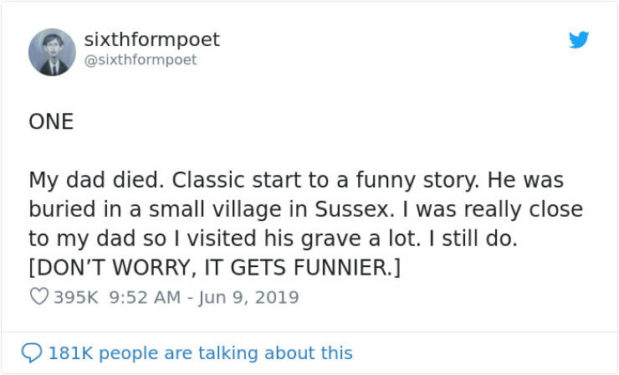 Twitter-käyttäjä sixthformpoet julkaisi tarinan, jollaista ainakaan minä en ole aikaisemmin kuullut.