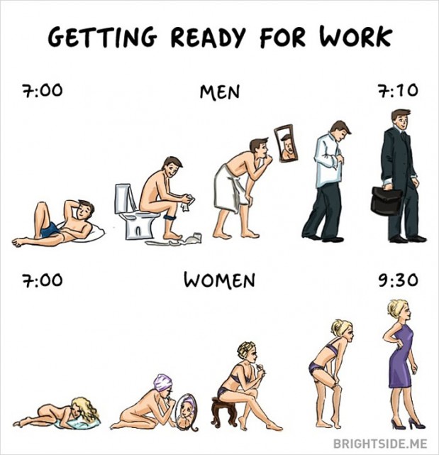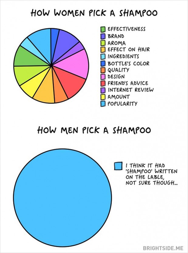 Miehillä ja naisilla on tiettyjä piirteitä, joissa molempien sukupuolten eroavaisuudet koostuvat humoristisilla tavoilla. Brightside kokosi parhaat eroavaisuudet, joita miesten ja naisten välillä esiintyy.