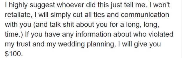 Morsian raivostui, kun joku oli julkaissut hänen tilapäivityksensä Redditissä.