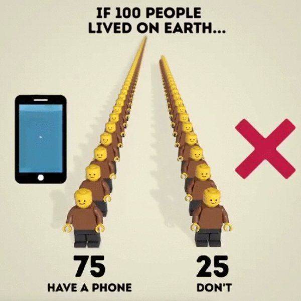 #19 75 ihmisellä olisi puhelin ja 25 ihmisellä ei.