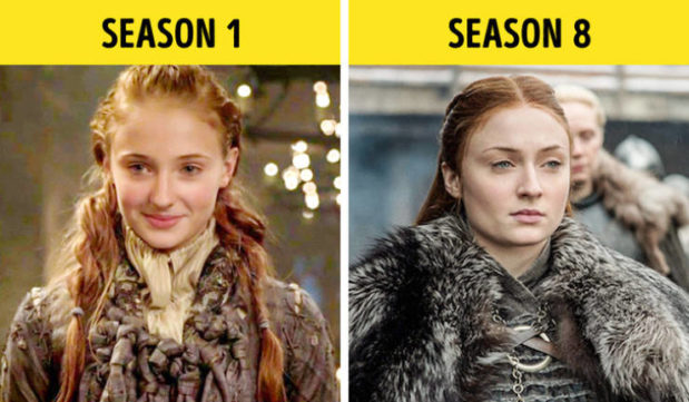 Osa niin sanotuista päähenkilöistä kuitenkin selvisi viimeisiin taisteluihin asti. Kokosimme kuvia tunnetuimmista Game of Thrones hahmoista, jotta näkisit kuinka heidän ulkonäkönsä muuttui 1. kauden ja 8. kauden välisenä aikana.